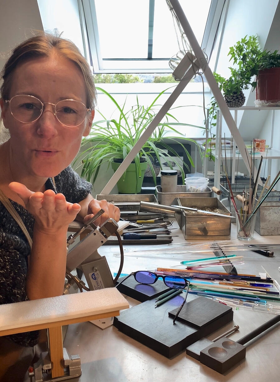 Filé à la flamme du chalumeau dans mon atelier en Bretagne, chaque cœur est unique tout en étant universel par son message.